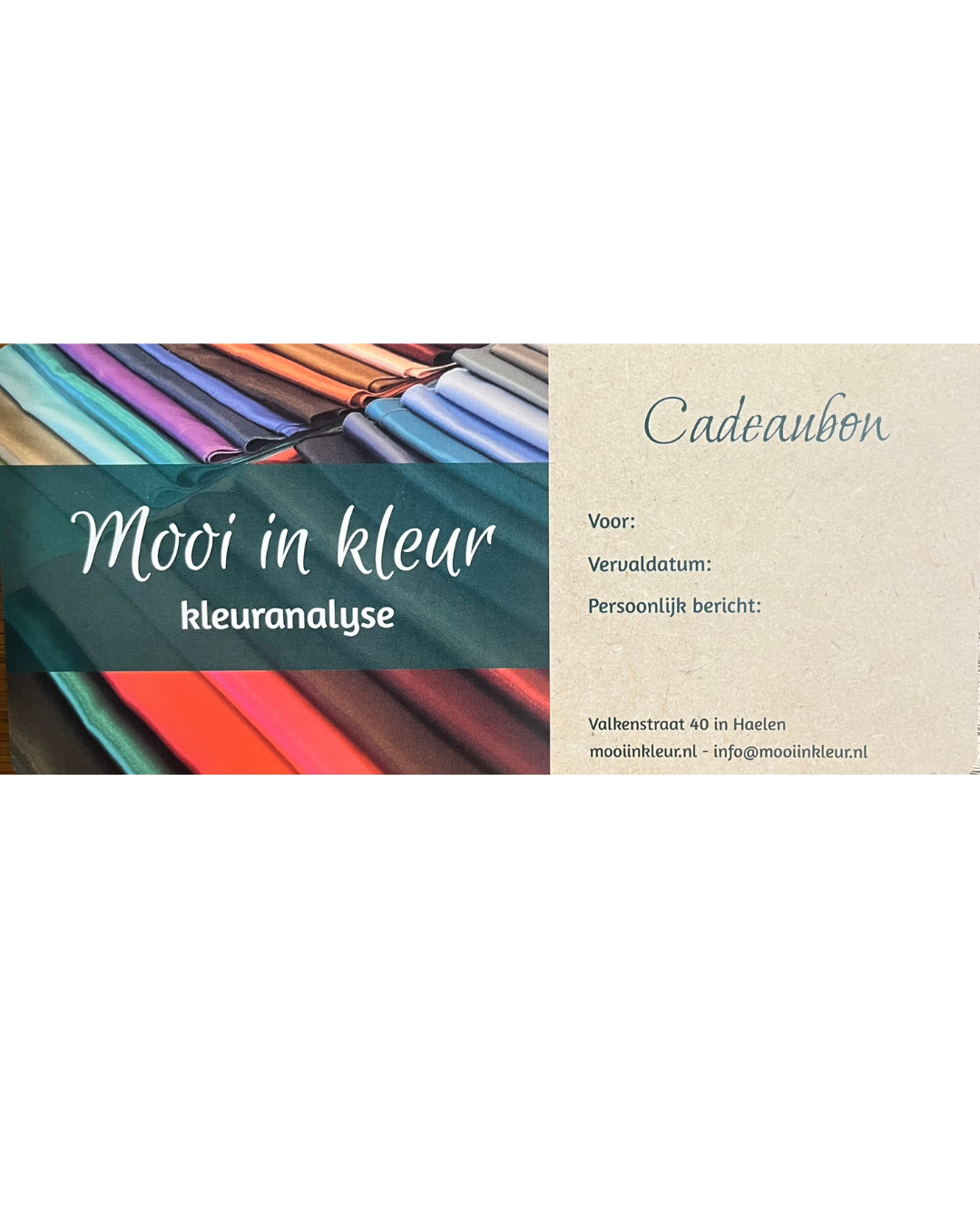 Met een kleurenanalyse ontdek je welke tinten jouw uitstraling het sterkst naar voren halen en mooi samen gaan. In een sessie van circa anderhalf uur krijg je helder welke kleuren het beste aansluiten bij jouw kleding, accessoires, make-up en haarkleur. Kleuren die niet alleen passen bij je kenmerken, maar ook bij je persoonlijkheid en professionele uitstraling.